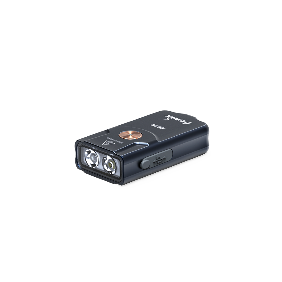 Модель Fenix E03R представляет собой маленький брелок для ключей, с полностью металлическим корпусом. При изготовлении изделия использовали высокоточную машинную обработку. Фонарь обладает встроенным литий-полимерным аккумулятором на 200 миллиампер-часов. Есть функция индикации степени заряженности, а также опция предупреждения о низком напряжении. Изделие обеспечено углублённой кнопкой с возможностью блокировки.